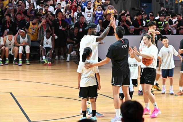 詹姆斯与崔永熙击掌 旁边还有李梦和赵睿