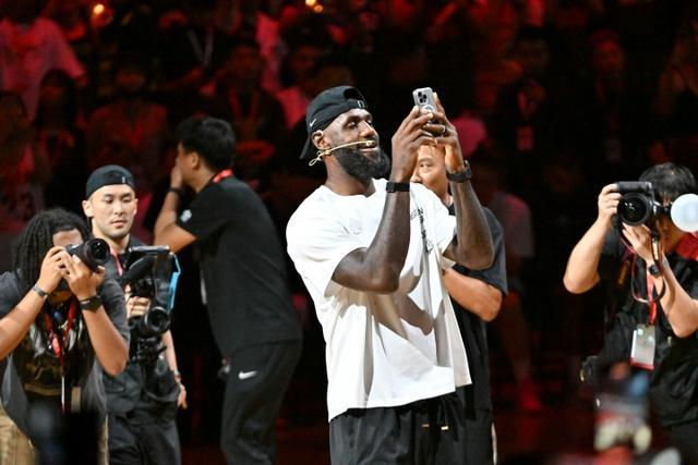 詹姆斯拿着手机拍拍拍