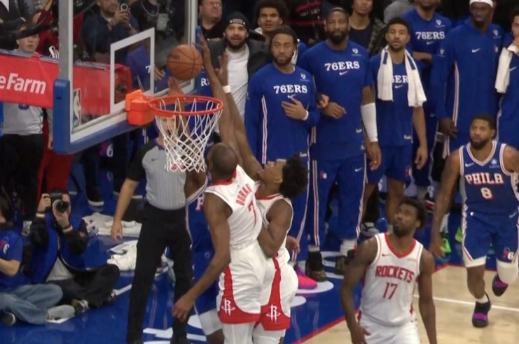 不过在常规时间最后时刻,马克西的突破上篮,杜兰特的盖帽是干扰球,只是裁判并没有吹罚,这也让76人主场球迷十分不满。从慢镜头来看,马克西的上篮已经碰板,随后杜兰特才封盖,是很明显的干扰球。火箭得到了裁判的帮忙,只不过他们在加时赛却没有把握住机会,反而让76人击败了“2次”。