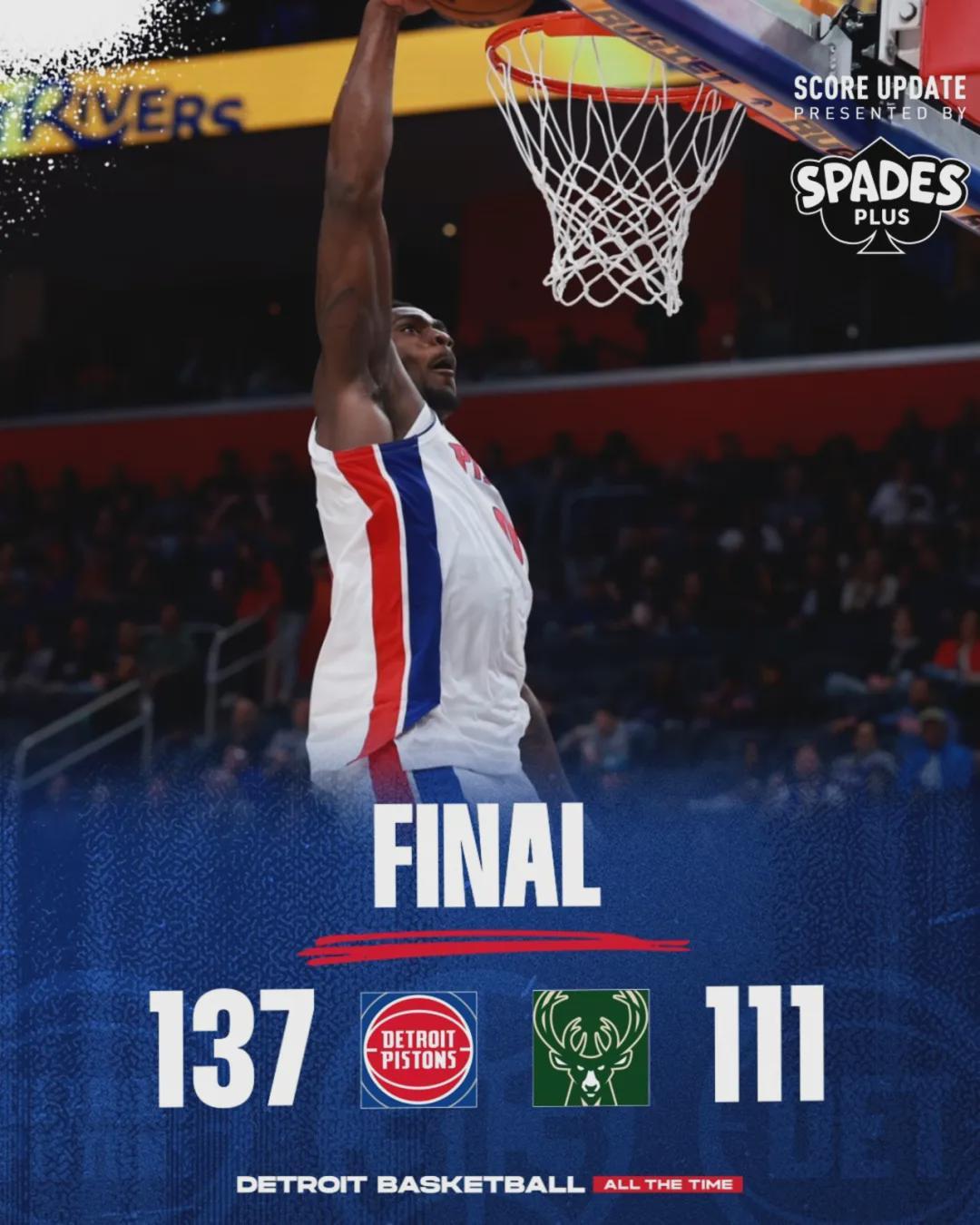 北京时间4月9日,NBA常规赛:活塞主场137-111大胜雄鹿,坎宁安正式复出。此前他因为左肺塌陷(气胸),连续缺席11场比赛,这期间活塞8胜3负锁定东部第一。算上今天这场,坎宁安本赛季出战了62场,而活塞只剩两场比赛要打。